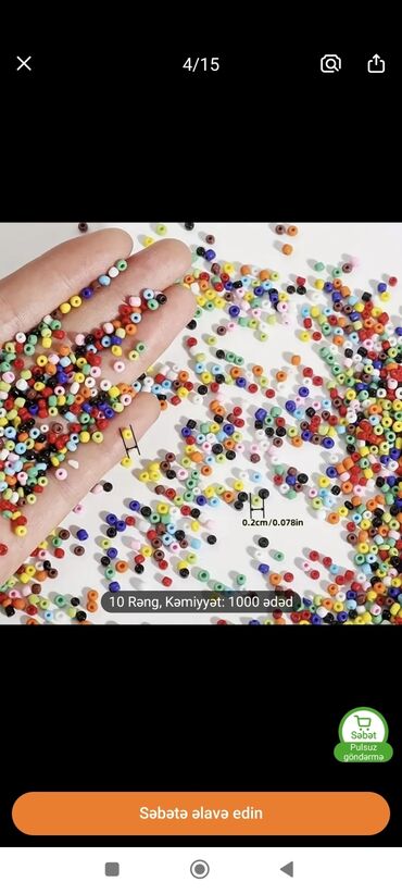 İstədiyiniz bütün rəngdə qum muncuqlar mövcutdur. Paçkası sadəcə 65 qəpikdir. Çox alana endirimdə ediləcək. Bundan əlavə digər növ muncuq və muncuq ləvazimatlarının endirimli qiymətlərlə satışı mövcutdur. Yazib maraqlana bilərsiniz.