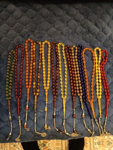 Əl işi ebonit Təsbehlər... Soldan sağa birinci və ikinci zonda hazırlanıb. Qiymətləri soldan sağa birinci SATILIB, ikinci 40 azn, üçüncü SATILIB, dördüncü 15, beşinci isə 25 azn-dir. Dördüncü adi d...