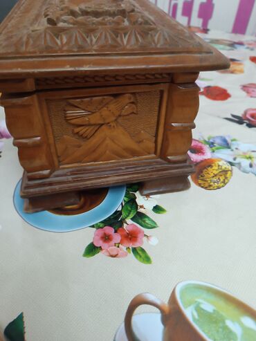 Əl işidi sandıq kimi ziynət əşyalarrı üçün qabı. ruçka qabı və gül qabı el işi bir ededi 20