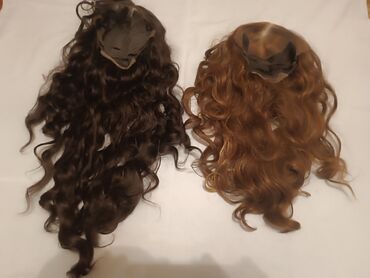 Təbii insan saçı – tünd qəhvəyi/şabalıd tonunda, qalın həcmlidir. Şəkildə ölçü xətti ilə göstərilib: təxmini uzunluq 55–60 sm civarında. Rəng tək tonlu, təbii parıltılıdır; 900e alinib 1 hefte taxi...