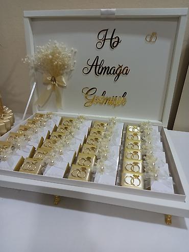 Mərtəbə şokolad çantalarının yıgılmasi.Çatdırılma var