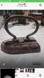 Antik döküm ütü - Material: tam metal/döküm - Quruluş: iri, möhkəm tutacaq; kənarlarında dekorativ relyef naxışlar - İş prinsipi: köhnə tip kömür/sobada qızdırılaraq istifadə olunan ütü - Təyinat:...