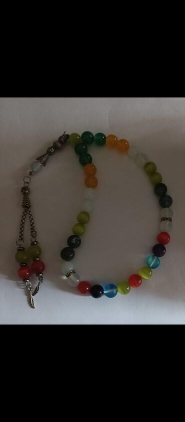 Təbii daşlardan təsbeh satılır.Qiymet 25 manat