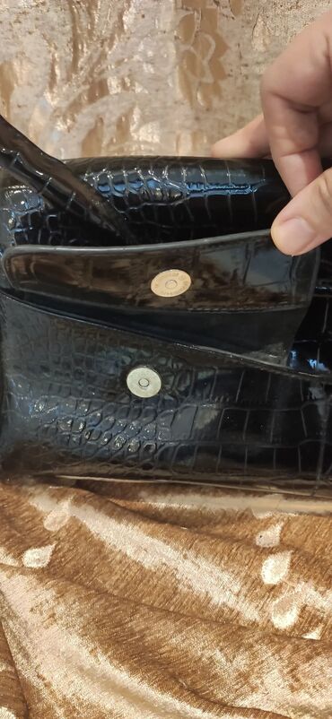 BIR GUNLUK BOYUK ENDIRIM 150 manat - Material: Authentic Italian Leather (orijinal italyan dərisi, iç etiketdə qeyd olunub) - Rəng: qara, laklı effektli - Faktura: timsah naxışlı (croc-embossed) - ...