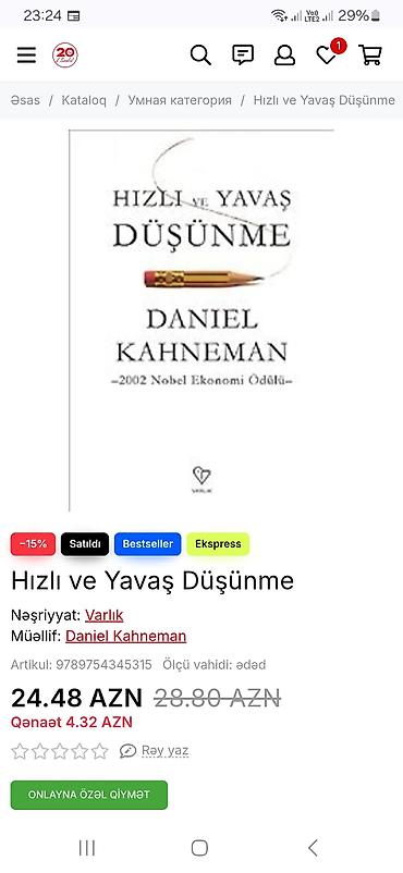 Kitab tezədir. 7 manata alınıb 4 manata satılır.