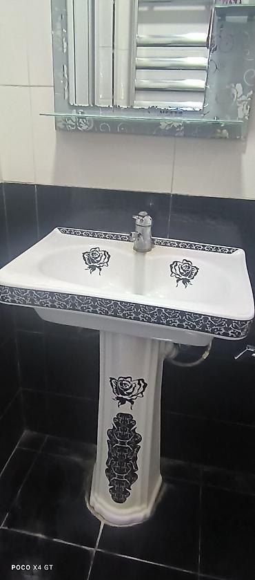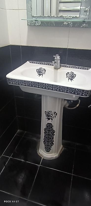 Islenmis Ağ keramika ayaqlı əl-üz yuyan Tulpan. Hec bir qirigi cati yoxdur. Smistitel ustunde verilir. Son qiymet 35 AZN Unvandan goturme (Genclik)