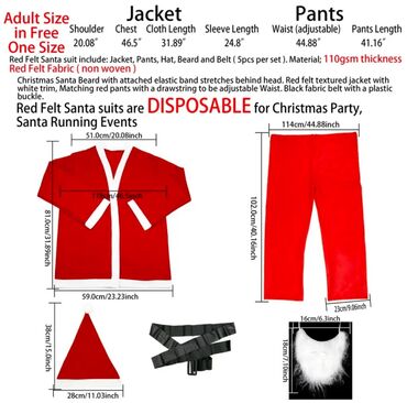 Böyüklər üçün Şaxta Baba paltar dəsti Geyim şəkildə gördüyünüz kimidi