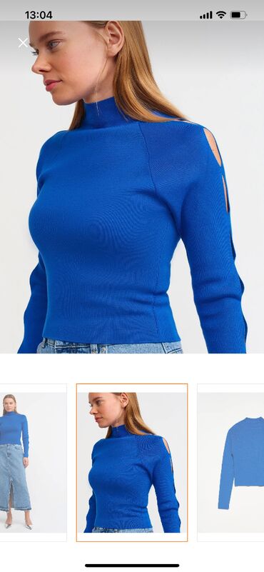Qadın üst geyimləri – 3 fərqli model 1) Dilvin bluz - Rəng: mavi - Uzunqol, boğazlı - Yan hissələrdə büzgü və bağlama ipləri - Ölçü: S - Qiymət: 9 manat 2) H&M trikotaj bluz - Rəng: mavi - Rezinl...