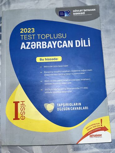 Azərbaycan dili Test toplusu 1-ci hissə satılır 4azn.İçi təmizdir.