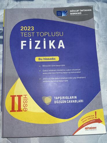 Məhsul: 2023 “Test Toplusu – Kimya”,"Riyaziyyat", "Fizika"(DİM), 2 hissəlik set Xüsusiyyətlər: - Nəşr: Dövlət İmtahan Mərkəzi (Abituriyent) - Bölünmə: I hissə və II hissə Kimya I və II hissələr yep...