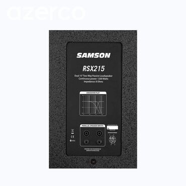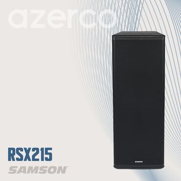 Qara rəngdə, Samson markalı RSX215 model akustik sistemi. İki zolaqlı passiv dinamik sistemi, səsi gücləndirmək və musiqi dinləmək üçün uyğundur. Tədbirlər, konsertlər və ya digər səs tələb edən məkanlar üçün nəzərdə tutulub.