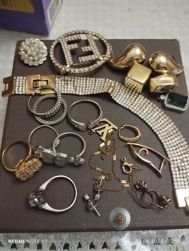 Qadın bəzək aksesuarları dəsti – qarışıq lot Tərkib: - Müxtəlif sırğalar: asqılı və qulplu modellər, klips və ear cuff-lar, ürək, yay, tac, ulduz və daşlı variantlar, rəngli elementli iri sallantı...