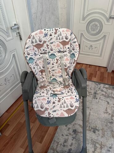 Rahat qidalanma və oyun vaxtı üçün funksional və praktik seçimdir. Dizaynı neytral tonlarda, uşaqlar üçün cəlbedici dinozavr naxışı ilə.