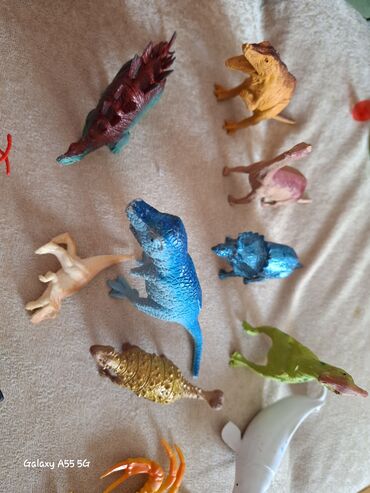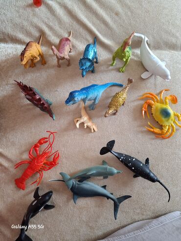 Müxtəlif dinozavr və dəniz canlıları fiqurlarından ibarət oyuncaq dəsti. Dəstə mavi rəngli tirannozavr, yaşıl rəngli steqozavr, qəhvəyi rəngli trikeratops və digər dinozavr fiqurları daxildir. Həmçinin, qırmızı rəngli xərçəng, ağ rəngli balina, qara rəngli orka, boz delfinlər və digər dəniz canlılarının fiqurları da mövcuddur. Bu fiqurlar uşaqların əyləncəli oyunlar qurmasına və təxəyyüllərini inkişaf etdirməsinə kömək edir. Müxtəlif ölçülü və rəngli fiqurlar kolleksiya üçün də uyğundur.
