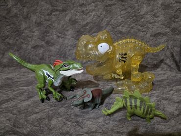 - Şəffaf sarı rəngli böyük T‑Rex fiquru (q动 göz detayı, mexaniki görkəm)