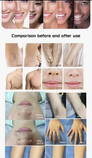 - Qoltuqaltı, ayaq, bikini, qol, sinə, üz və digər nahiyələrdə uzunmüddətli tük azaldılması