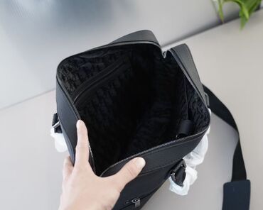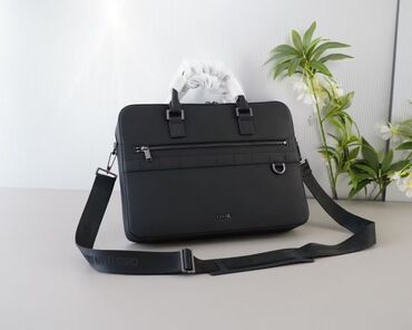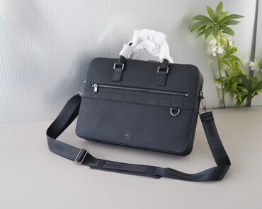 Dior kişi üçün iş çantası – klassik qara rəngdə, minimal dizayn. Xüsusiyyətlər: - Material: teksturalı (dərimsi) xarici səth, metal furnitura - Ölçü: laptop və A4 sənədlər üçün uyğun, nazik profil...