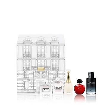 Qutu üzərində Dior loqosu və memarlıq təsvirləri ilə elegant dizayn mövcuddur.