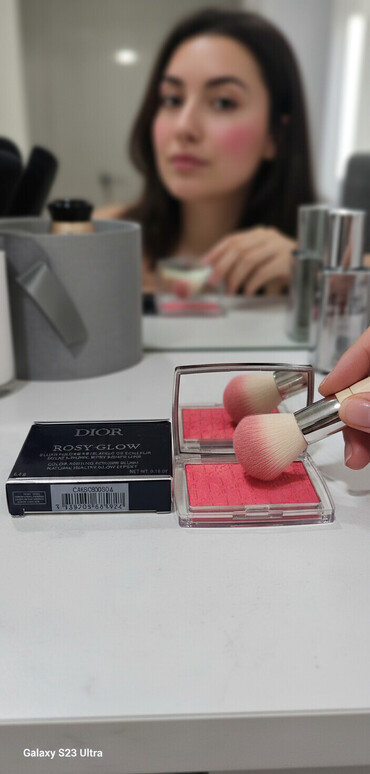 Məhsul: YSL və digər brendlərdən yanaq rəngləri (blush) • YSL kompakt yanaq rəngi – qızılı qapaqlı, güzgülü qablaşdırma, ortasında YSL loqosu olan press edilmiş tekstura. Canlı çəhrayı/şok-rozə to...