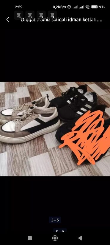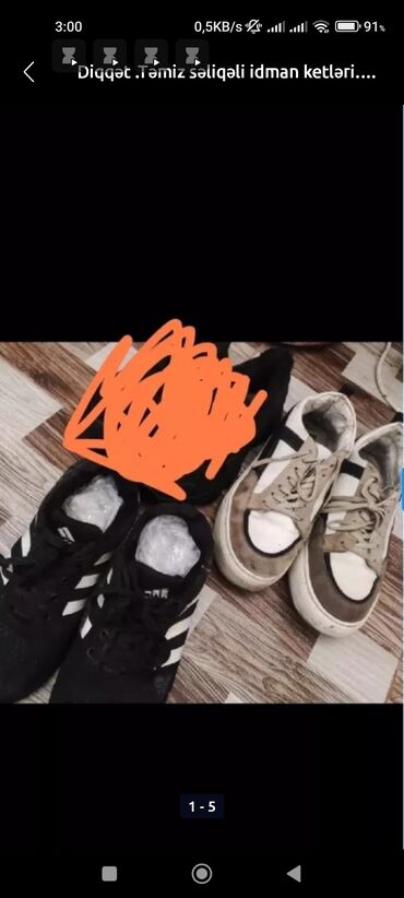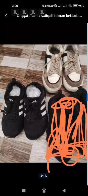 AğDiqqət .QARA SAILIB. Təmiz səliqəli idman ketləri. hec nə deffekti yoxdur.Geyilməli vəziyyətdədir.40-41-42 razmerə.möhkəm idman krasovkaları.Altında deffekt yoxdur..Rahat geyiləsi ayaqqabılardır. Slxdıgı üçün satılır..Su buraxmır .təmiz və səliqəli qalıb.Baha alınıb. və az geyilib. 1 i 10 man.