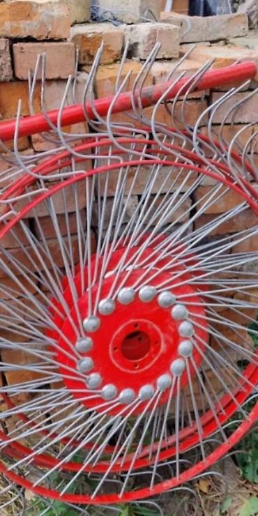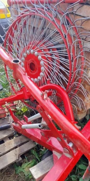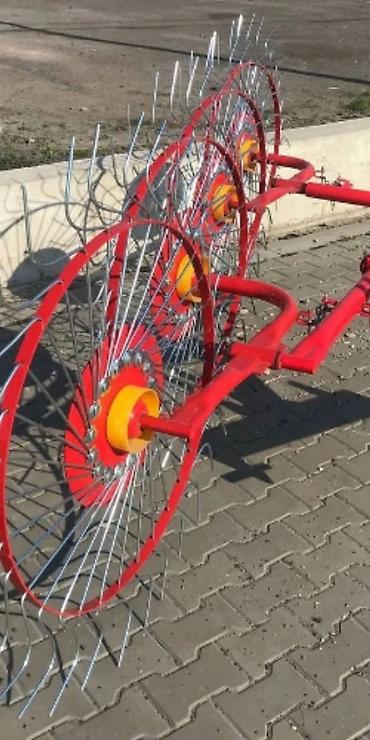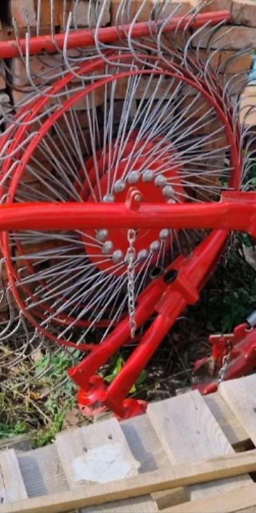 Bu, ot yığımı üçün nəzərdə tutulmuş bir ot dırmığıdır. Qırmızı rəngli əsas çərçivəyə malikdir və otu yığmaq üçün böyük metal təkərlərlə təchiz olunmuşdur. Kənd təsərrüfatı işləri üçün istifadə olun...
