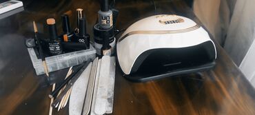 Manikür üçün tam set Tərkib: - SUN LED/UV dırnaq lampası (ekranlı, taymer düymələri ilə) - Elektrik frez aparatı (sürət tənzimləyici düymə, PL/F/R rejim göstəricisi, keramika/frez ucluqları üçün y...