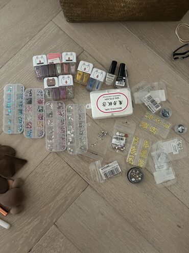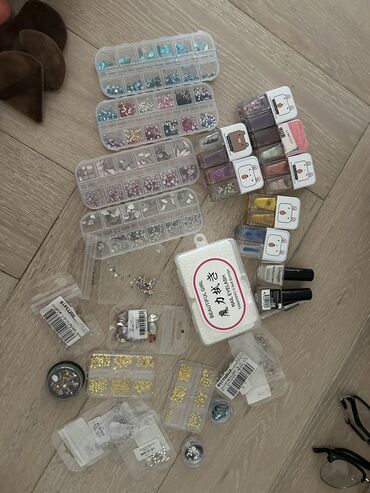 - Müxtəlif formalı və ölçülü strazlar, kristallar, daşcıqlar və metal dekorlar (qızılı, gümüşü, rəngli).