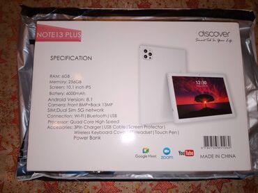 Discover Note13 plus 10.1düym. Smart tal in your life. Specification. RAM: 6 GB Memory: 256 GB Screen: 10.1 inch IPS Battery: 6000mah Android Version: 8.1 Camera: Front 8MP+Back 13MP Sim:Dual Sim 5...