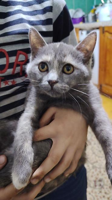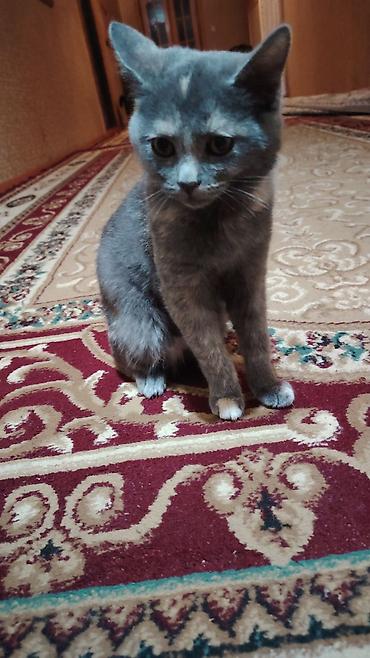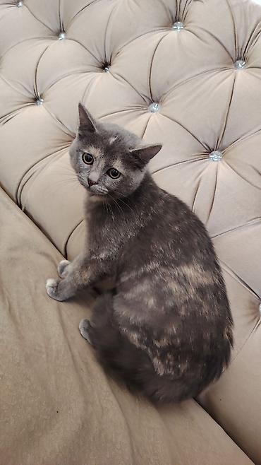 - Cins: qısa tüklü ev pişiyi (duman-boz rəngdə, krem ləkələr ilə “tortie” naxış)