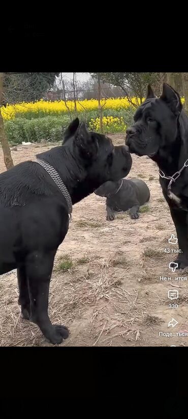 Cane Corso balaları - Cins: Cane Corso (İtalyan mastifi) - Rəng: tam qara, sinədə ağ işarə - Ana it eyni cinsdə, iri və güclü quruluşlu - Balalar sağlam, sümük quruluşu möhkəm, geniş döş qəfəsi və...
