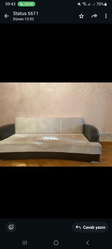 Endirim edildi. Tecili satilir. Turk ustehsali divan kreslo desti. Baha alinib. Yaxsi veziyyetde. Qiymet 550 azn. Unvan Inqlab. SabinaSultan0080