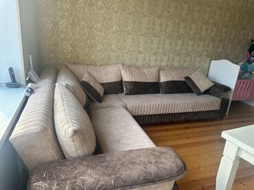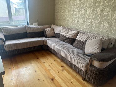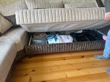 Açılan və bazalı 3 nəfərlik divan - Rəng: tünd boz/yaşıl tonlarda məxmər effekti olan parça döşəmə - Dizayn: düz xətli, enli qol dayaqları, modern tikişli bel hissəsi - Funksiya: çarpayıya çevrilə...