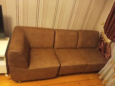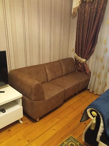 Üç yerlik divan – qəhvəyi rəngli, müasir minimal dizayn.