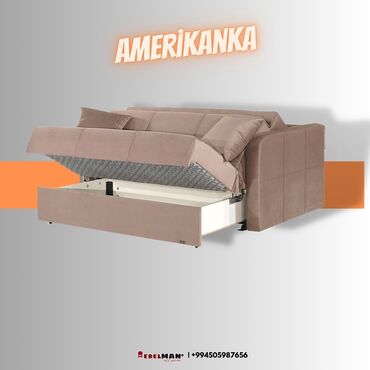 Çarpayı özəlliyi olan, amerikanka mexanizmli AMERİKANKA yumşaq mebeli ilə evinizin gözəlliyinə gözəllik qatın. Funksionallığı ilə səmərəli mebeldir elə deyilmi?! Açılıb taxt ölçüsündə olan və bazalı divan amerikanka stildə ADONİS MAERİKANKA məhsulunu 15% xüsusi endirimlə əldə bilərsiniz.