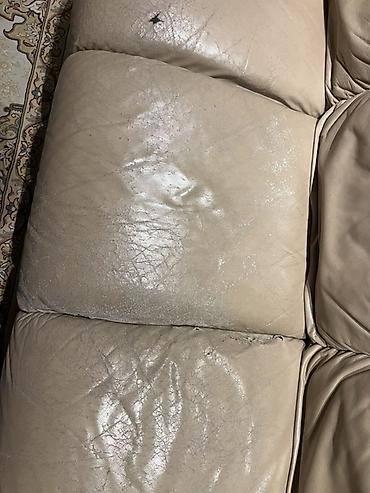 - Dərinin bəzi hissələrində rəng solmaları və çatlamalar görünür; oturacaq zonalarında aşınma izləri var.Qiyməti razılaşmaq olar! Divan dəsti çox baha alınıb,Dərinin zədələnmiş hissələrini vərpa etmək olar, qalan hissələri ideal vəziyyətdədir