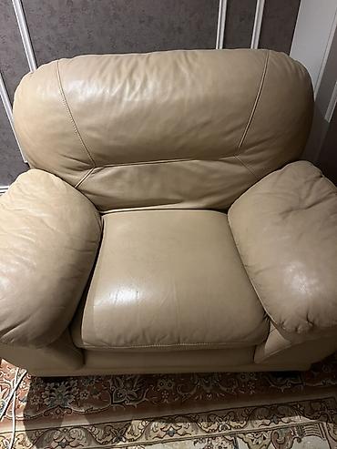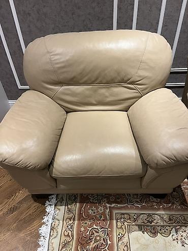 Bej rəngli dəri mebel dəsti