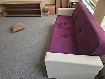 - Divan: İkiqat süngərli oturacaq və bel hissəsi, bənövşəyi məxmər parça üzlük, krem rəngli qol dayaqları. Geniş 3 nəfərlik oturma sahəsi, xrom rəngli dayanıqlı ayaqlar, bel hissəsində dekorativ tuşlama tikişləri.