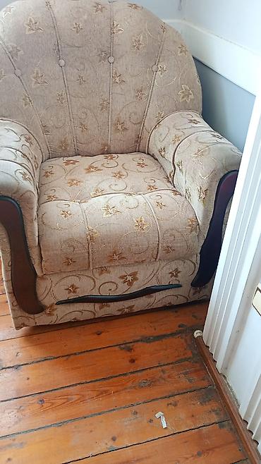 Mebel dəsti bugün təcili satilmalidi - Yumşaq mebel: 1 ədəd üçnəfərlik divan və 2 ədəd geniş kreslo. Bej-tonlarda, çiçək naxışlı parça üzlük, həcmi bol süngərli oturacaq və bel hissəsi, qalın və r...