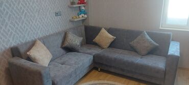 Boz rəngdə, künc formalı divan dəsti. Dörd ədəd yastıqla təchiz olunub. Rahat oturmaq və istirahət üçün uyğundur. Ev və ya ofis interyerinə uyğun bir seçimdir.