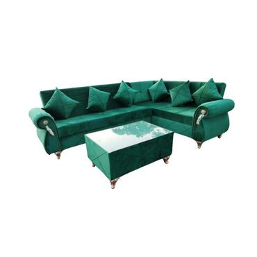 Tünd yaşıl rəngdə, künc divanı və uyğunlaşdırılmış qəhvə masası dəsti. Divan rahat oturmaq üçün yumşaq yastıqlara malikdir. Masanın üstü şüşədəndir və divanın rənginə uyğun olaraq eyni tünd yaşıl rəngdədir. Bu dəst, qonaq otağı və ya istirahət guşəsi üçün əla seçimdir.