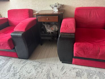 1 divan 2 kreslo desti ve jurnalni stolu ile birlikde satilir.yaxwi veziyyetdedi.hem divan hemde kreslolarin alti bazadi.kreslolar acilib kravat formasinda olur.