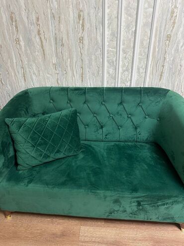 Divan – rəng seçimi var - Model: klassik düz xətli, iki qoltuqlu, taxta ayaqlı - Üzlük: yumşaq toxumalı parça (şamoa effekti), düyməli kapitonaj detalı - Dizayn: qol hissələrində dekorativ qızılı ...