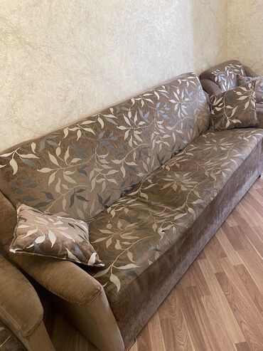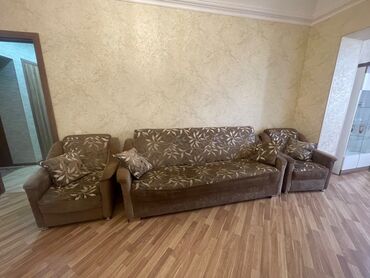 Divan ve 2 kreslo satiram. Kohne modeldir acilan deyil bazasi yoxdur. Mohkem materilandan yigilib burjunludur. Balaca bir hissesinde sokulme var.