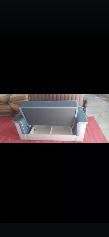 Məhsul: Açılan və bazalı divan - Ölçü: ümumi uzunluq təxminən 2 metr (şəkildə qeyd olunub) - Funksiya: açılır mexanizm; içəridə bazası var – yorğan-döşək və digər əşyalar üçün saxlama bölməsi - Ko...
