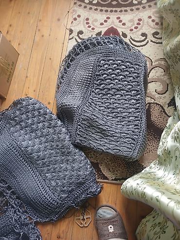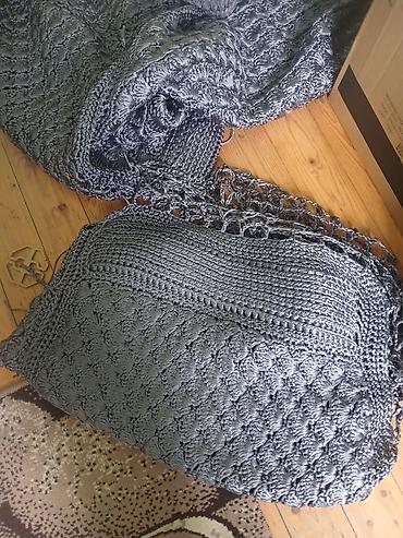 Xandallar üçün əl işi toxunma dəst - Material: iplikdən əl ilə toxunmuş, sıx və naxışlı hörgü - Rəng: açıq boz - Komplekt: 2 hissə – böyük örtük (məfrə) və ona uyğun uzun kənar/yan örtüklər - Diza...