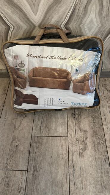 Divan və kreslo üçün nəzərdə tutulmuş qəhvəyi rəngli örtük dəsti. Həndəsi naxışlar və bəbir printi ilə bəzədilmişdir. Bu örtük dəsti mebelinizi qorumaq və otağınıza fərqli bir görünüş vermək üçün i...