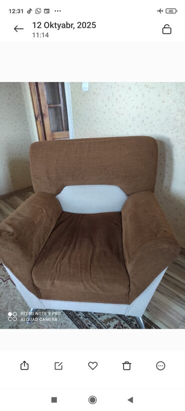 Başlıq: 2 ədəd kreslo, 1 ədəd divan (bazalı) – super vəziyyətdədir Təsvir: - Dəst: 1 ədəd üçnəfərlik divan + 2 ədəd kreslo - Divan bazalıdır – oturacaq hissəsi altında geniş saxlanma bölməsi - Rən...