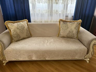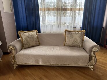 - Komplektə daxildir: divanda 2 ədəd iri dekorativ yastıq (qızılı haşiyəli, naxışlı)