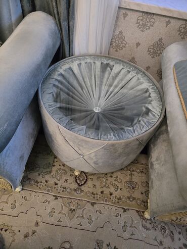 Klassik üslubda yumşaq mebel dəsti - Tərkibi: 3 nəfərlik divan + 2 ədəd iri kreslo - Parça: mərməri naxışlı, ipək parıltılı üzlük; dekorativ düymələr və tikiş xətləri - Rəng: boz-bej tonlarında, q...
