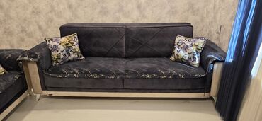 Üçlü dəst yumşaq mebel – 1 böyük divan və 2 ədəd kreslo. təzə kimindir 3 aydır alınıb köçlə əlaqədər olaraq satılır qiymət 350. tel: 070-822-77-97 - Material: zamşa effektli parça, toxunuşu yumşaq...